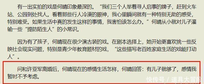 当许亚军再婚,外界便很关注何晴什么时候再婚。事实上,面对这个问题,何晴曾回应过,她说她现在有了儿子,暂时不考虑再婚。