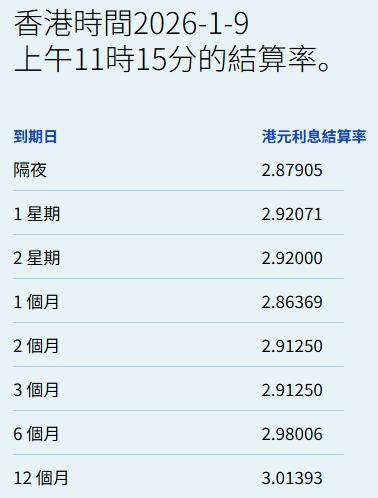 智通财经APP获悉富腾优配 ,1月9日,港元拆息全线向下,而与楼按相关的一个月拆息报2.86369%,跌14.429基点;反映银行资金成本的三个月拆息报2.9125%,跌8.274基点。